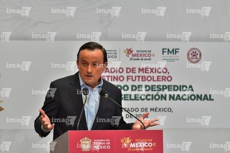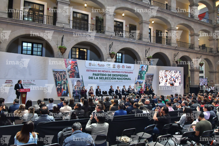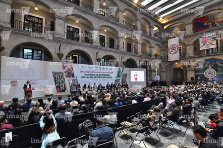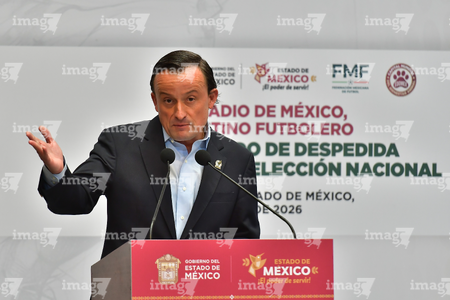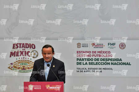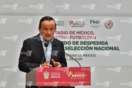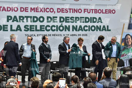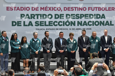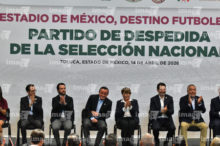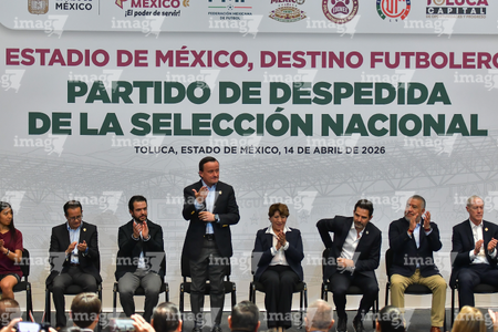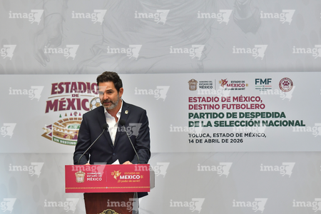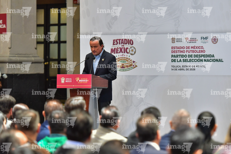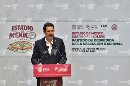 Toluca, Estado de México, 14 de abril de 2026. , durante una conferencia de prensa para anunciar un partido internacional de preparación entre la Selección Nacional de México y la Selección de Serbia a disputarse en el estadio Nemesio Diez, realizada en el Palacio de Gobierno de Toluca. Foto: Imago7/ Arturo Hernández