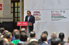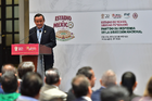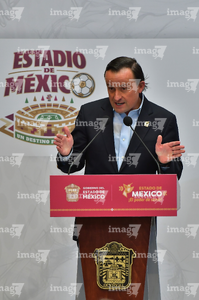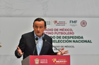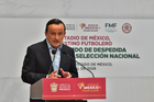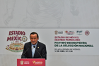 Toluca, Estado de México, 14 de abril de 2026. Mikel Arriola, Comisionado de la FMF, durante una conferencia de prensa para anunciar un partido internacional de preparación entre la Selección Nacional de México y la Selección de Serbia a disputarse en el estadio Nemesio Diez, realizada en el Palacio de Gobierno de Toluca. Foto: Imago7/ Arturo Hernández