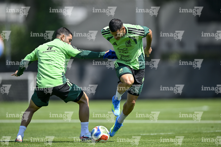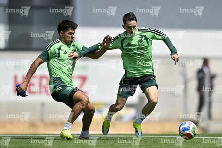 Ciudad de México, 25 de marzo de 2026. Erik Lira y Germán Berterame, durante el entrenamiento de la selección nacional de México en las instalaciones del CAR, previo al partido de preparación frente a la selección de Portugal Foto: Imago7/ Etzel Espinosa