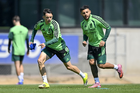 Ciudad de México, 25 de marzo de 2026. Álvaro Fidalgo y Alexis Vega, durante el entrenamiento de la selección nacional de México en las instalaciones del CAR, previo al partido de preparación frente a la selección de Portugal Foto: Imago7/ Etzel Espinosa