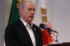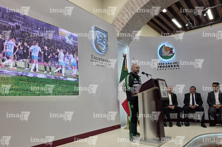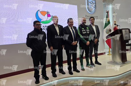 Zacatecas, Zacatecas, 9 de febrero de 2026. Ivar Sisniega y Pedro López, durante el anuncio del partido de eliminatoria de la Selección Nacional de México Femenil en contra de Islas Virgenes, realizado en el Palacio de Gobierno. Foto: Imago7/ Raúl Martínez de Luna