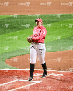 Ciudad de México, 27 de febrero de 2026. Diana Karina Encinas, durante el segundo juego de la serie de temporada regular de la Liga Mexicana de Softbol, entre Diablos Rojos Softbol Femenil y Olmecas de Tabasco Femenil, celebrado en el estadio Alfredo Harp Helú. Foto: Imago7/ Alexis Chávez