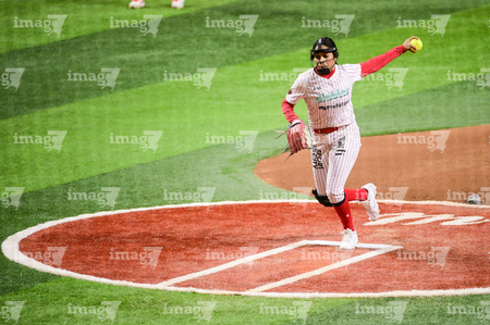 Ciudad de México, 27 de febrero de 2026. Wakako Chikamoto, durante el segundo juego de la serie de temporada regular de la Liga Mexicana de Softbol, entre Diablos Rojos Softbol Femenil y Olmecas de Tabasco Femenil, celebrado en el estadio Alfredo Harp Helú. Foto: Imago7/ Alexis Chávez