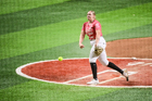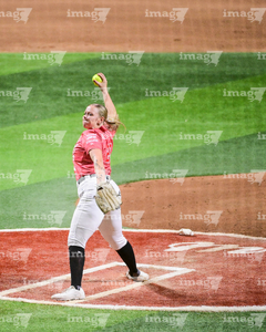 Ciudad de México, 27 de febrero de 2026. Jayme Reddacliff, durante el segundo juego de la serie de temporada regular de la Liga Mexicana de Softbol, entre Diablos Rojos Softbol Femenil y Olmecas de Tabasco Femenil, celebrado en el estadio Alfredo Harp Helú. Foto: Imago7/ Alexis Chávez